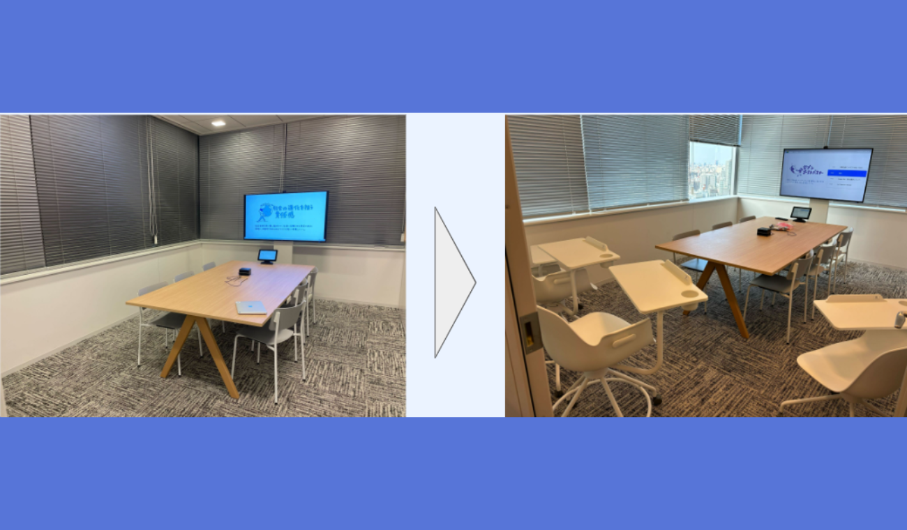 収容人数の最適化、オンライン会議設備のチューニング、利用率の低い来客会議室を社内兼用へ変更。