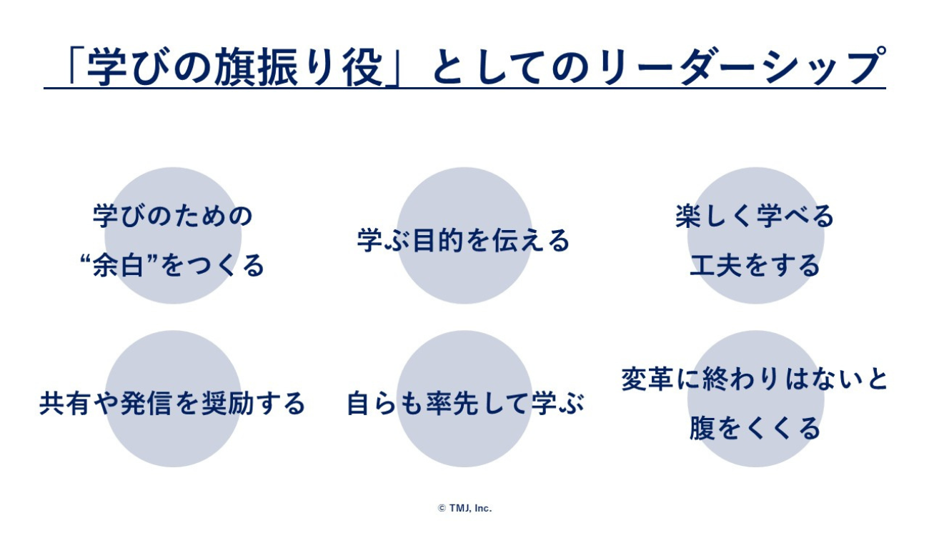 またリーダーの皆さんには、ぜひ「学びの旗振り役」として、率先して新しいことに触れ、メンバーと一緒に学ぶ姿勢を示していただきたいと思います。学びは強制されるものではなく、共感と興味から始まるものです。