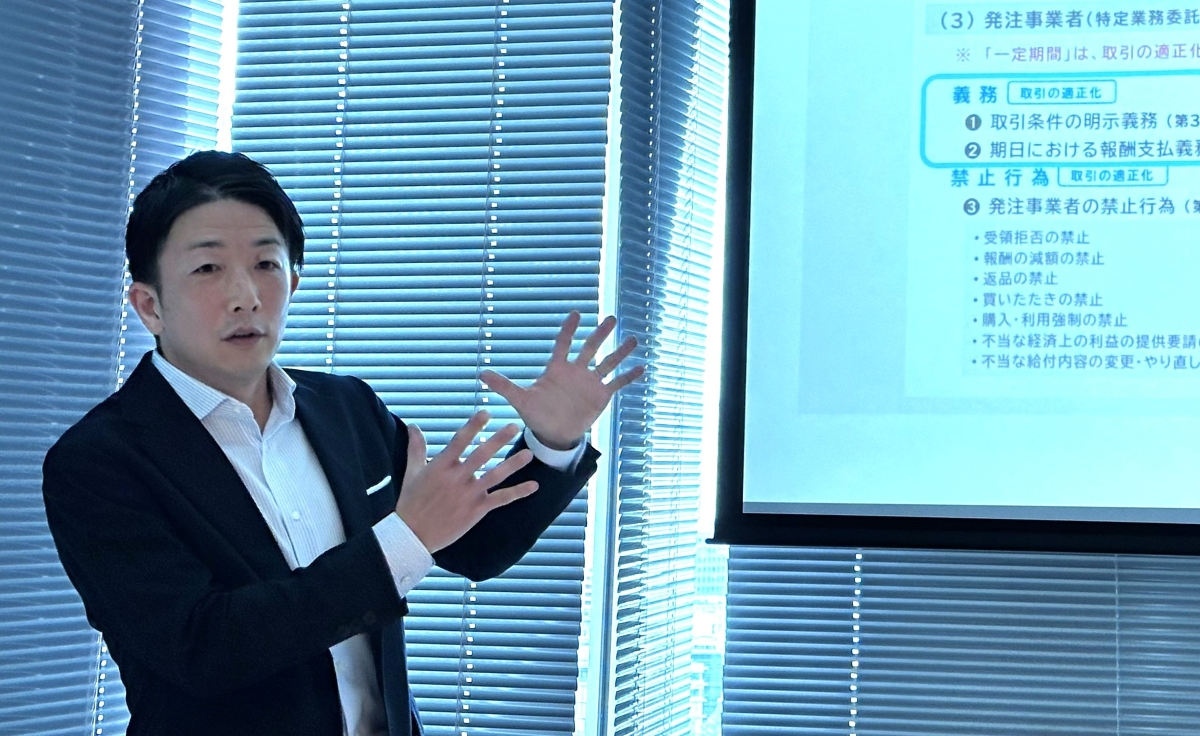 施行後の2025年3月にはゲームソフト・アニメ制作・フィットネス業45社への行政指導、6月には大手出版社2社・楽器メーカーへの勧告が行われ、いずれに関しても必ず入っている指摘事項が「明示義務」「支払義務」の2つの未対応であると、眞壁氏は指摘した。