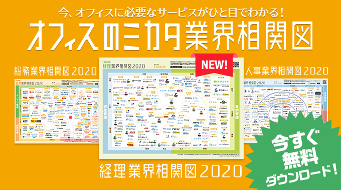 業界相関図とは、バックオフィス業務である総務・人事・経理担当者を支えるツールやサービスを視覚的にわかりやすく表した相関図です。