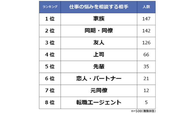 【仕事の悩みを相談する相手ランキング】男女500人アンケート調査