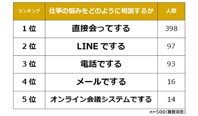 仕事の悩み相談は「直接会ってする」が1位