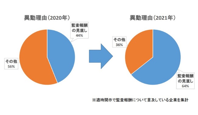 異動理由:「監査報酬の見直し」による異動の割合が急増