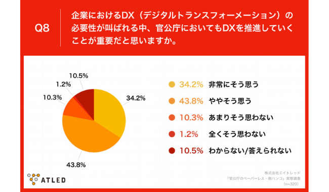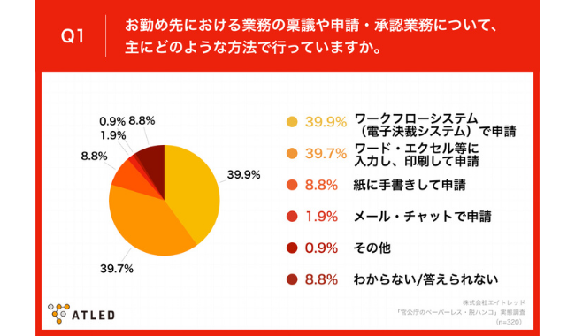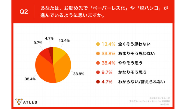 株式会社エイトレッド(本社:東京都渋谷区、代表取締役社長:岡本 康広 以下、エイトレッド)は、「官公庁のペーパーレス・脱ハンコ」実態調査を実施した。