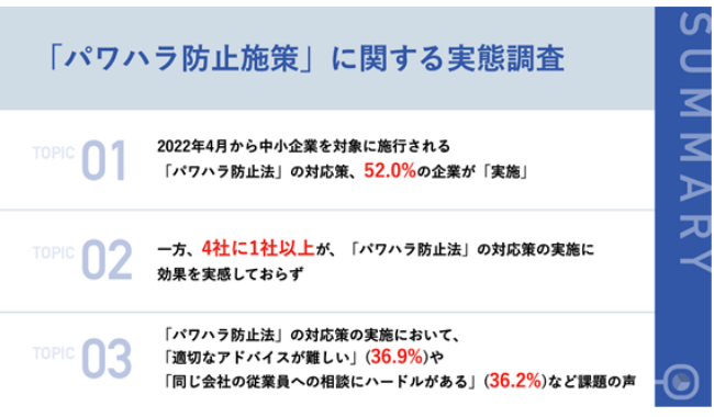中小企業の人事担当者「パワハラ防止施策」実施も、4社に1社以上が「効果を実感せず」