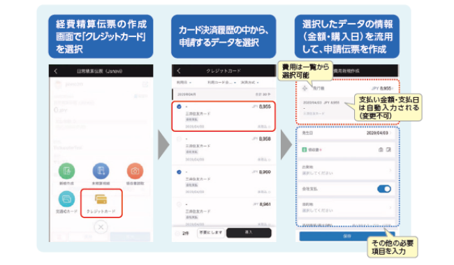 新しい経費精算システムは「Spendia」の標準機能を利用して、経理に申請伝票を回すためのワークフローと受領した請求書に対して支払いを依頼するワークフローを構築した。また、法人カードは、八千代工業がクレジットカード会社から発行を受けた後、カード番号と個々の社員を紐付ける設定を行うだけで「Spendia」との連携が完了する。カード決済から数日で、各社員の「Spendia」画面に使用履歴が反映され、社員はこの一覧の中から申請するデータを選択するだけで、金額や支払日を手入力する手間が省けるほか、ガバナンスも強化できる。