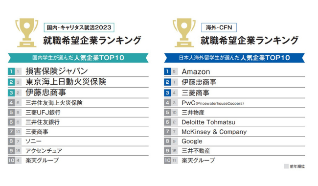 CFN 海外大生が選ぶ就職人気企業ランキング