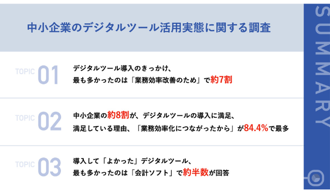 【中小企業、デジタルツール導入のきっかけとは?】約8割がデジタルツール導入に「満足」