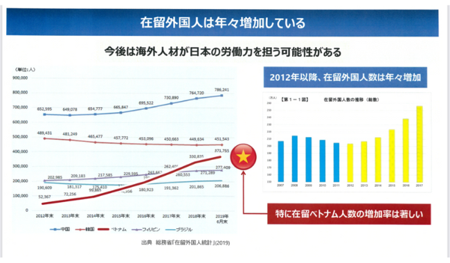 ■在留外国人は年々増加している(特に在留ベトナム人数の増加率は著しい)
