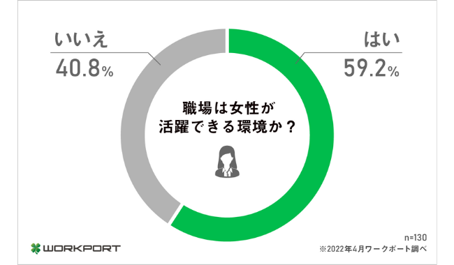 対象者全員に、現在の勤務先(離職中の人は直近の勤務先)は女性が活躍できる環境だと感じるか聞いたところ、「活躍できる環境だ」と回答した人が59.2%と半数を超えた。