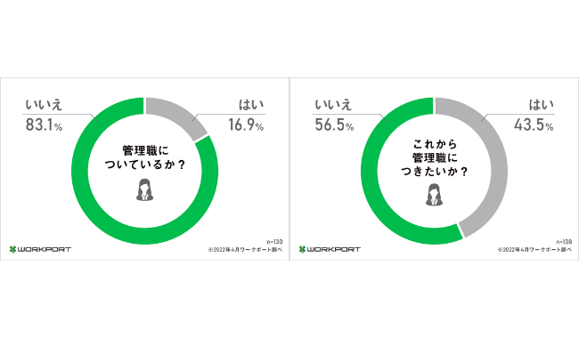 さらに、「管理職についていない」と回答した人にこれから管理職につきたいと思うか聞いたところ、「管理職につきたくない」という回答が56.5%と、半数を超えた。