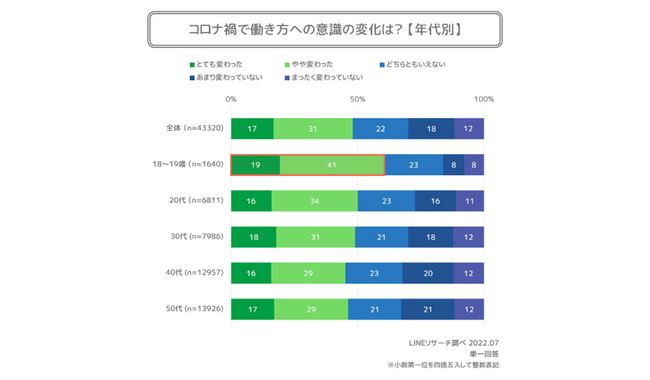 【LINEリサーチ】コロナ禍での働き方への意識、10代では6割超が「変わった」と回答