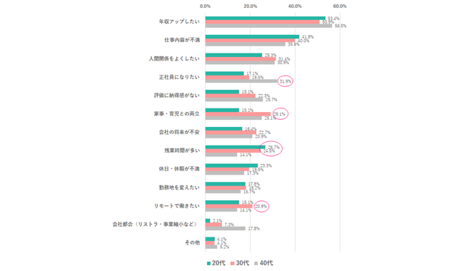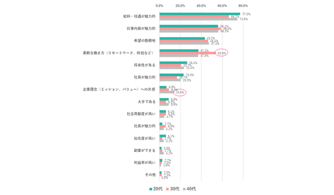 20代は給料、30代は柔軟な働き方、40代は正社員を求める傾向