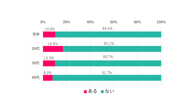 書類選考に通過し、企業から面接日程の調整連絡が来たのに、無視したこと(返信しなかったこと)はあるかどうか尋ねたところ、全体では10.6%の人が「ある」と回答した。