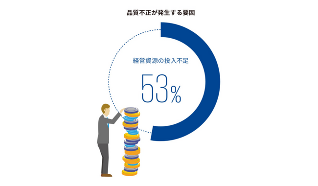 品質不正が発生すると考えられる要因として、「品質管理・品質保証等に対する経営資源(ヒト・モノ・カネ)の投入が不十分」を挙げた企業が最も多かった。前回調査においても収益追求・コスト削減が優先され、品質保証の確保が後回しになっていることが主な要因として考えられていたが、今回調査においても同様の問題意識を有している状況がうかがえる。
