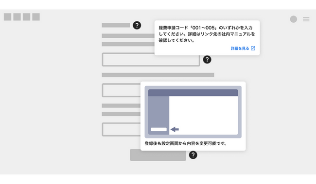 正式版では追加機能として、システムやツールの利用時、操作でつまづきやすい場所にハテナボタンを設置できるようになっている。