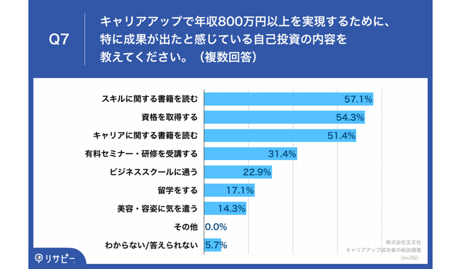 キャリアアップには、読書、資格取得や有料セミナー受講などといった自己投資は、外せないもののようだ。その中でも、「スキルに関する書籍を読む」ことについては、特に成果が出たと実感するビジネスパーソンは多いことから、キャリアアップ成功には、「書籍」は必要不可欠の必需品と言えそうだ。今後キャリアアップを考えている方は、調査結果を参考にしてみては?