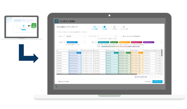 HUEインボイス名寄せは、各企業が保有する仕入れ先リストに、国税庁が発行する適格事業者の登録番号を照合し、登録番号付きの仕入れ先リストを自動で作成するサービスである。