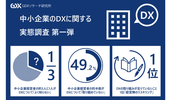 現代はデジタルビジネス時代と呼ばれる反面、日本は『IMD世界デジタル競争力ランキング』で64か国中28位とデジタル後進国と言われている。また、経済産業省『IT人材の最新動向と将来推計に関する調査結果』によると、2030年には最大で79万人IT人材が不足すると予測されている。特に中小企業においては、DXに対する知識不足、人材不足、資金不足などから、大企業以上に進捗できていないという現状がある。こういった実態を明らかにすべく、この度「中小企業のDXに関する実態調査」を行った。