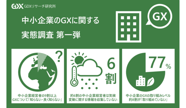 Green(グリーン)とDigital(デジタル)を活用した中小企業の変革を目指すフォーバルGDXリサーチ研究所(本社:東京都渋谷区、所長:平良学)は、中小企業の経営者1619人に「中小企業のGXに関する実態調査」を実施した。