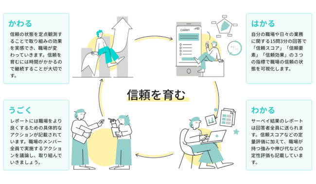 Seenでは4つのステップで職場の信頼を育む支援を行う。