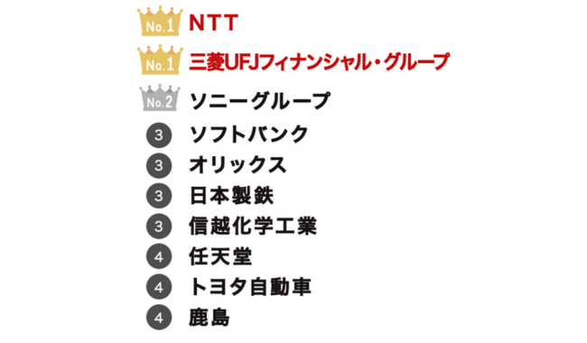 日経CNBCの投資家アンケートでNTTや三菱UFJフィナンシャル・グループが上位に