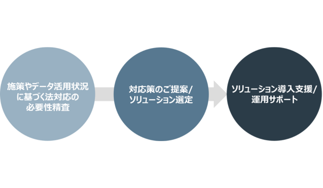 DACではこれまで各プライバシー法に基づく対応と、企業の1st Partyデータ活用に必要なプライバシーコンサルティングを「データレギュレーションコンサルティングサービス」として提供しており、法律とシステムの両面で多くの企業をサポートしている。新たに外部送信規律への対応として、株式会社インターネットイニシアティブ(以下 IIJ)やPriv Tech株式会社(以下 Priv Tech)などと提携し、各社が保有している外部送信規律に対応できるソリューションを多数取り揃え、企業の状況や要望に合わせたツールの提供を行う。