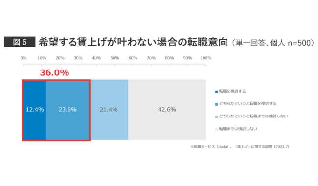 【賃上げに関する調査】4割弱の個人が、希望する賃上げが叶わない際は転職検討
