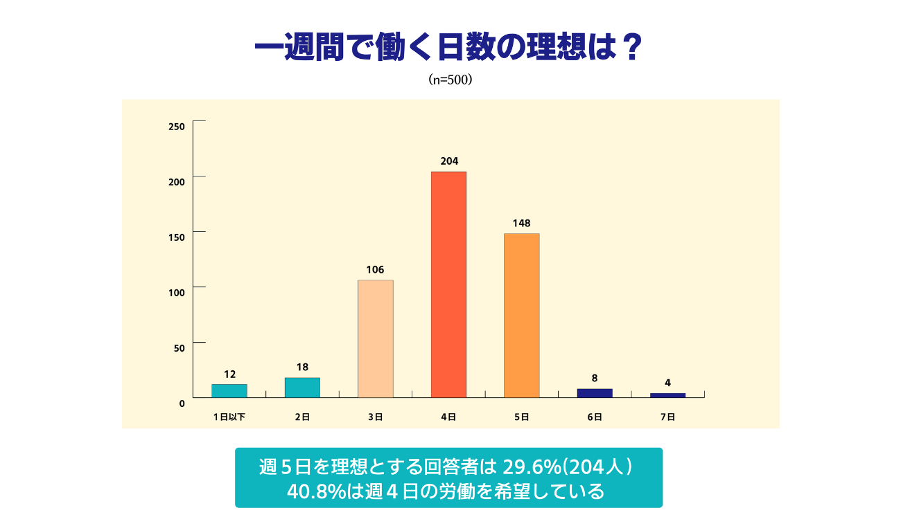 1週間で働く日数の理想は「4日」が最多