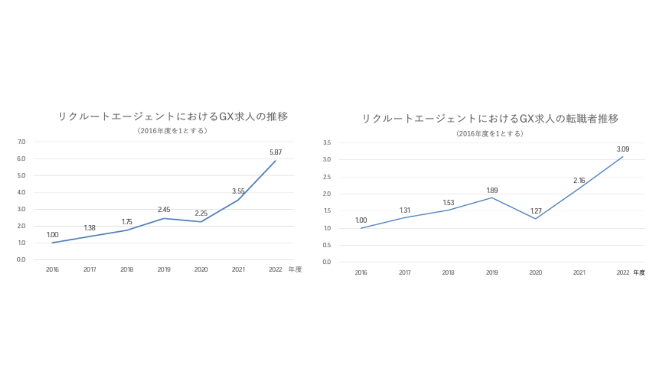 株式会社リクルート(本社:東京都千代田区、代表取締役社長:北村吉弘、以下リクルート)は、グリーントランスフォーメーション(以下、GX)に関する求人と転職の動向についてまとめたものを公表した。