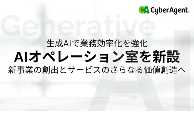 株式会社サイバーエージェント(本社:東京都渋谷区、代表取締役:藤田晋)は、全社員の生成AIに関するリテラシー向上に取り組み、現在のオペレーション業務を2026年までに6割削減、また生成AIを活用しサービスのさらなる価値創出することを目的に生成AI活用推進組織「AIオペレーション室」を2023年10月に新設したと発表した。