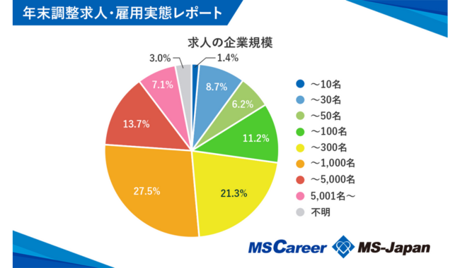業務に年末調整が含まれる求人の27.5%が「301~1000名」規模の企業
