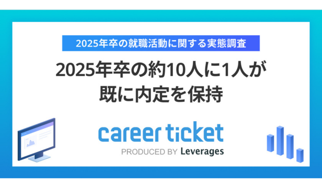 レバレジーズ株式会社が運営する新卒向け就活サービス「career ticket (キャリアチケット)」は、キャリアチケットに登録している2025年卒業予定の大学生205名を対象に、就活状況についての調査を実施した。