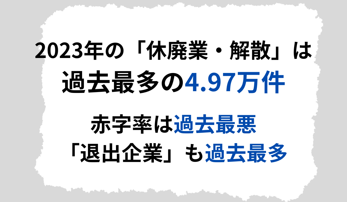 2023年の「休廃業・解散」は過去最多の4.97万件で赤字率は過去最悪「退出企業」も過去最多