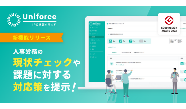 Uniforce株式会社(代表取締役CEO:砂田和也)は、人的資本経営にとって人事労務の適切な管理が、いかに重要であるかを早期に認識してもらうための機能として、運営するIPO準備クラウドに「人事労務セルフチェック機能」をリリースした。