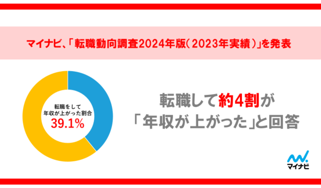 株式会社マイナビ(本社:東京都千代田区、代表取締役 社長執行役員:土屋芳明)は、20~59歳の正社員を対象に実施した「転職動向調査2024年版(2023年実績)」の結果を発表した。