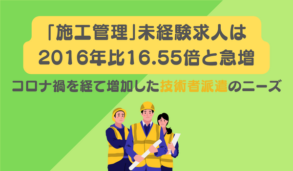 「施工管理」未経験求人は2016年比16.55倍と急増|コロナ禍を経て増加した技術者派遣のニーズ
