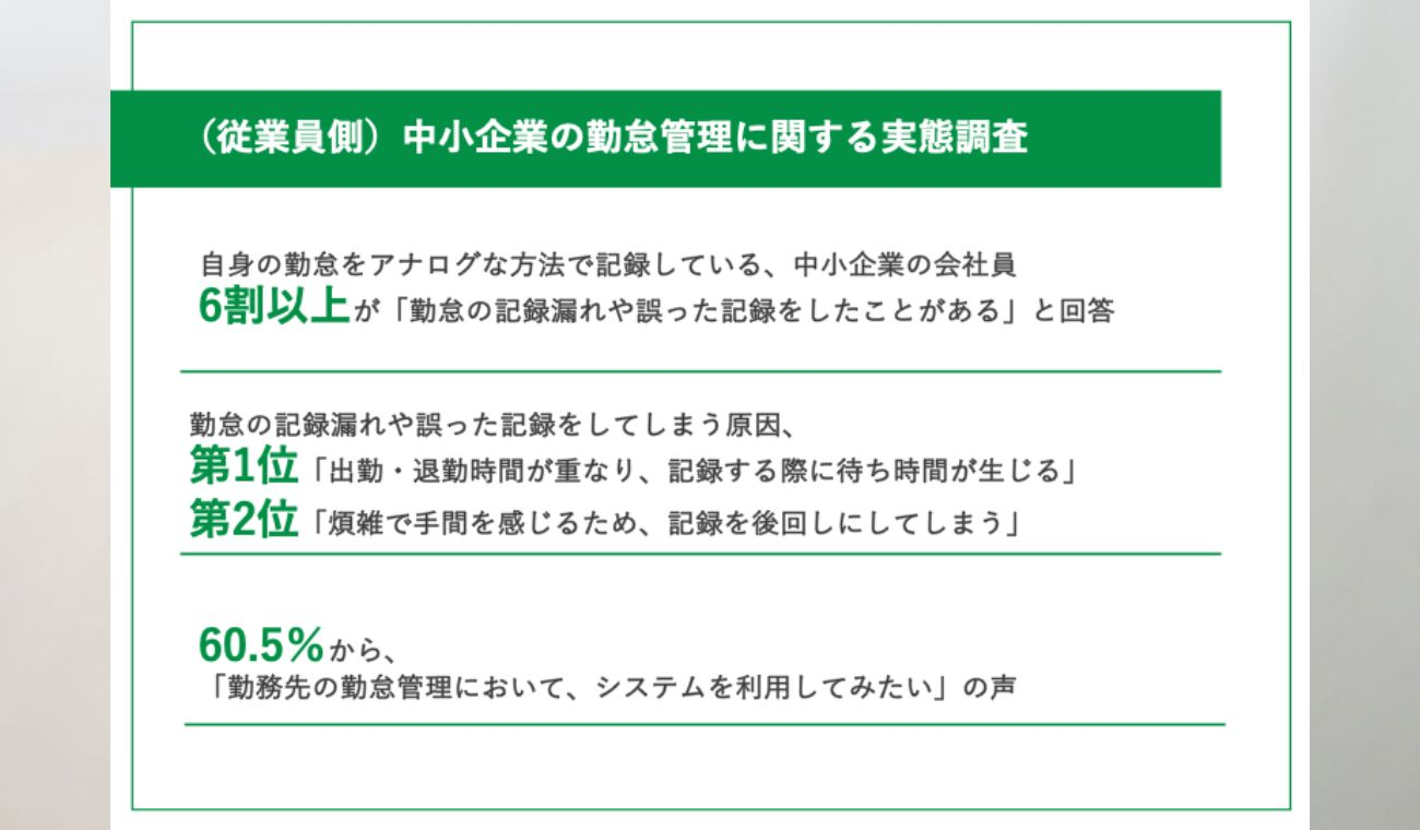 本調査結果からは、アナログな勤怠管理に不満を抱く人が多くいること、アナログであることが記録漏れや誤記録の原因となっていることが明らかになった。同社は本調査の前編として、管理者側の実態調査(※)も実施しているが、アナログな勤怠管理に課題感を持っている管理者は8割近くに及んでいるという。従業員側、管理者側どちらにもアナログな勤怠管理は最良の手法とは言えないようだ。