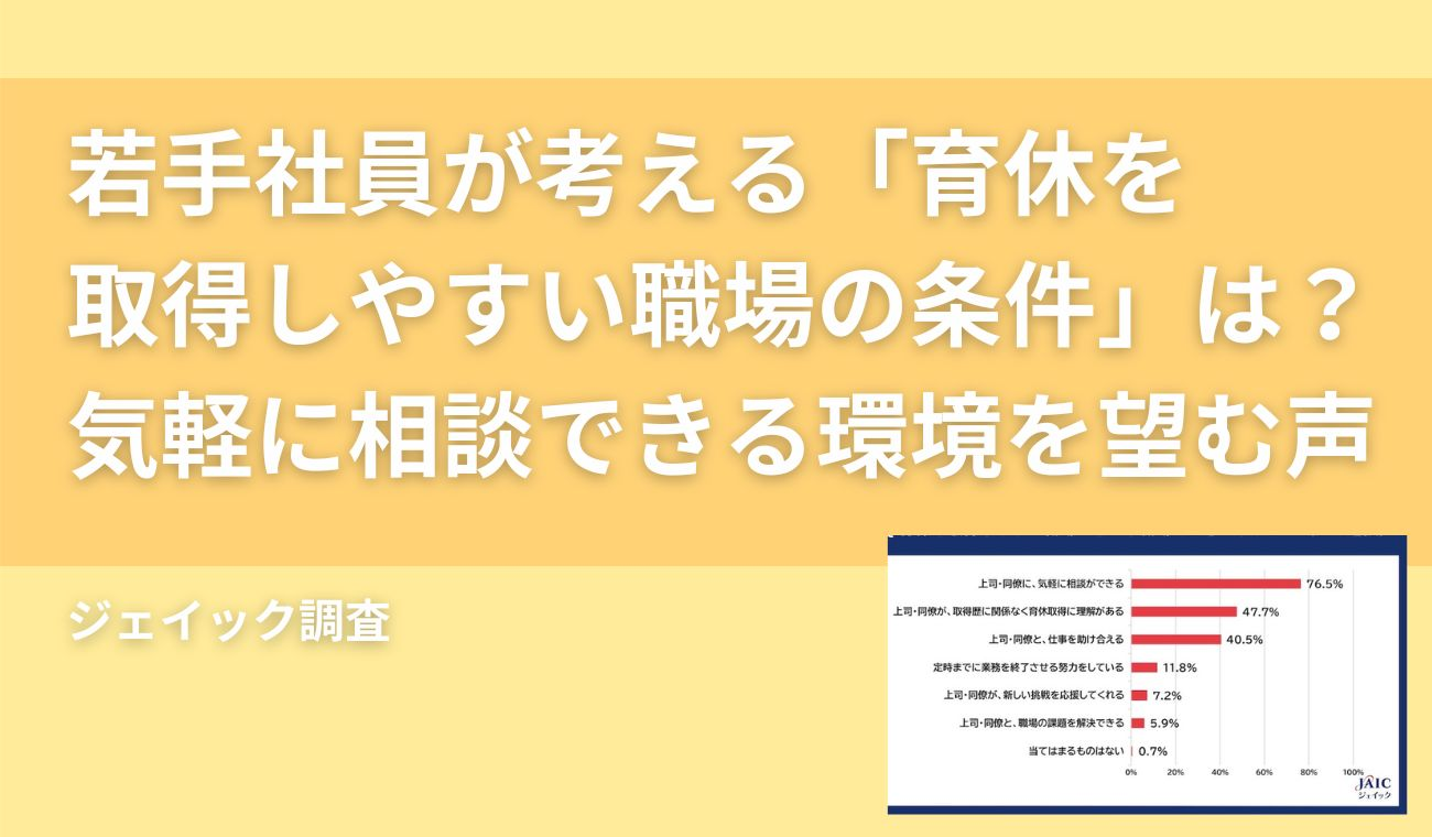 若手社員が考える「育休を取得しやすい職場の条件」は?気軽に相談できる環境を望む声 ジェイック調査