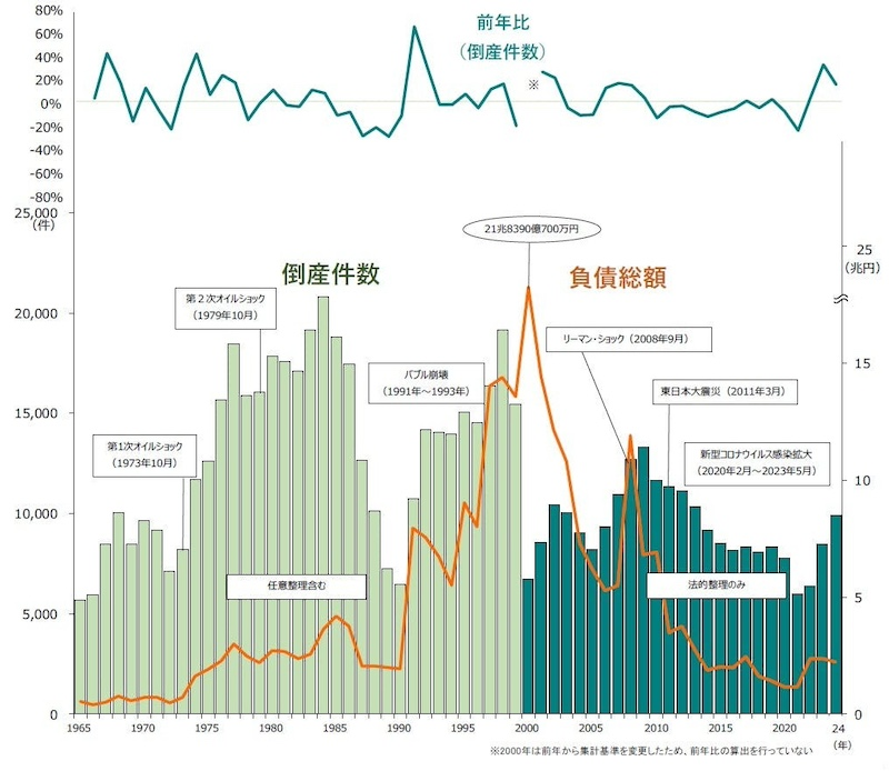 2024年度倒産件数は11年ぶり1万件超えの1万70件 TDB調査