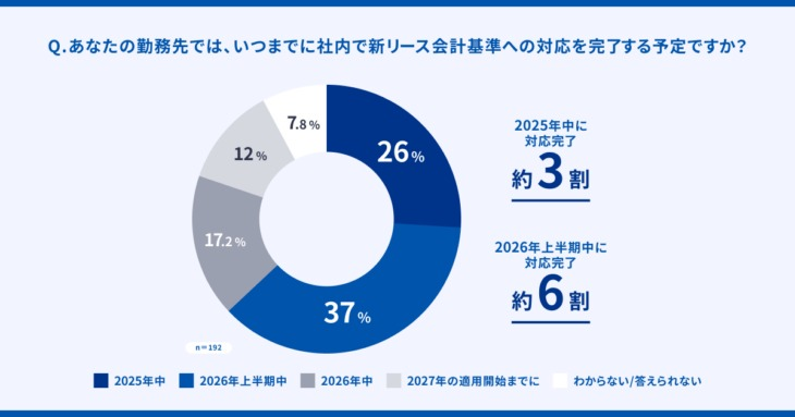 さらに、対応完了時期については「2025年中(26.0%)」「2026年上半期中(63.0%)」との回答が寄せられており、2027年度の強制適用に向けて半数以上が早めの対応を進めていることがわかった。