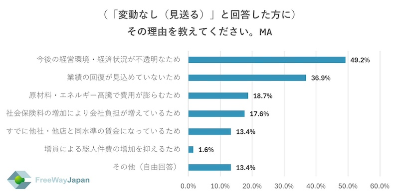 「今後の経営環境・経済状況が不透明なため(49.2%)」
