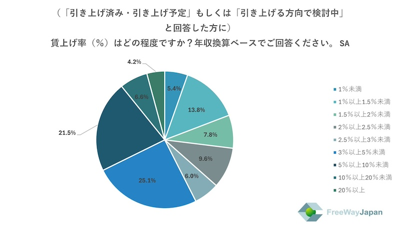 賃上げ率は「3%以上5%未満」が最多で25.1%