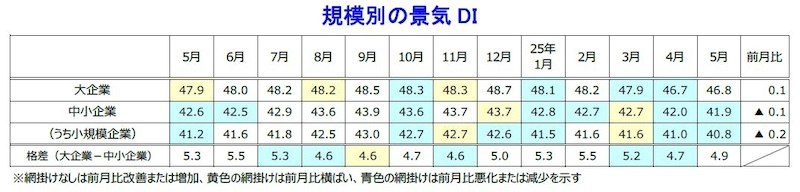 2025年5月の景気DIは42.6 2カ月連続で悪化に