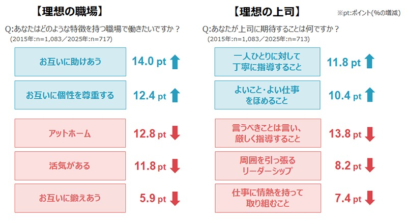 本調査では、若手世代の仕事や職場への価値観が明らかになった。育成にあたる上司世代にとっては違和感を感じるような内容もあるかもしれない。世代間での価値観の違いはどの時代にも起こり得ることだろう。大切なのは、その違いについて互いに理解していくことではないだろうか。