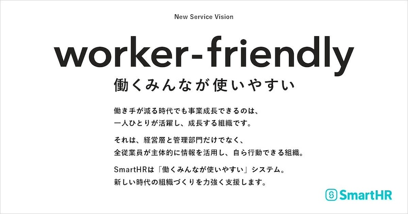 同社は特設サイトの公開と併せて、サービスビジョンを刷新。「労働にまつわる社会課題をなくし、誰もがその人らしく働ける社会をつくる。」というコーポレートミッションの実現に向けて、管理部門や経営層、人事労務担当者だけでなく、現場の管理職や従業員も含む「働くみんなが使いやすい」システムを開発していく想いを「worker-friendly」という言葉に込め「worker-friendly 働くみんなが使いやすい」を掲げた。特設サイトでは、新たなサービスビジョンに込めた想いやその背景などについても掲載している。