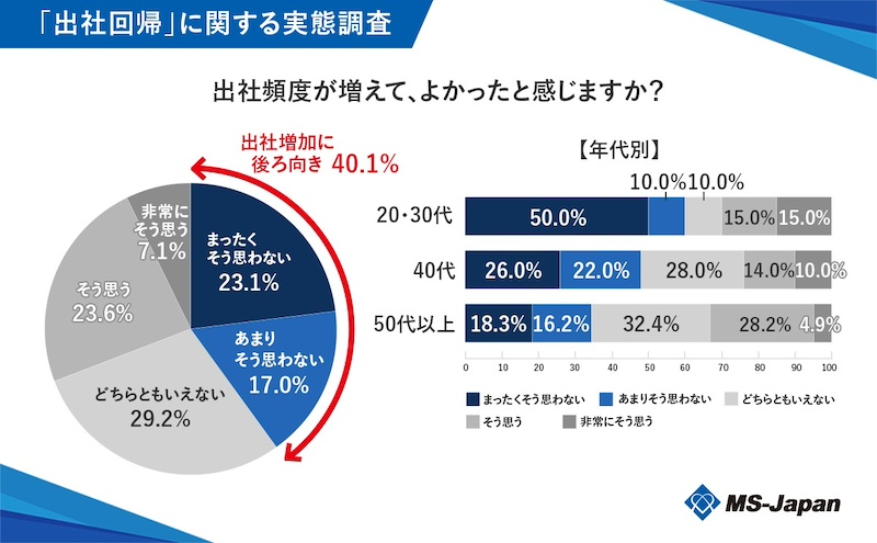 株式会社MS-Japan(本社:東京都千代田区 代表取締役会長CEO:有本隆浩)は、全国の管理部門・士業人材に調査を実施。「出社回帰」に関する実態を探った。