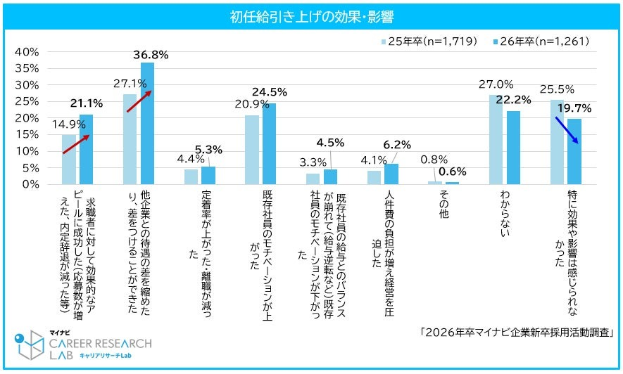88.8%が初任給引き上げ 2026年卒の新卒採用動向 マイナビ調査