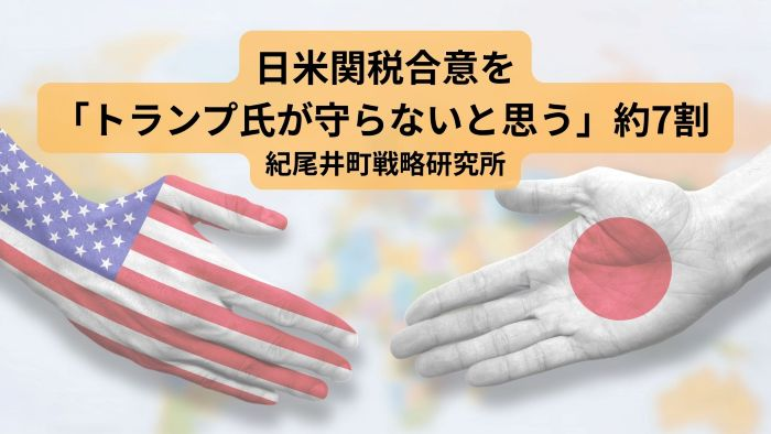 日米関税合意を「トランプ氏が守らないと思う」約7割 紀尾井町戦略研究所