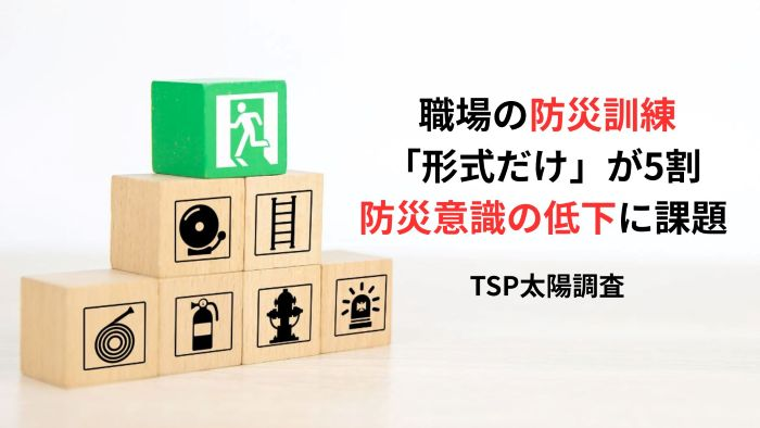 職場の防災訓練「形式だけ」が5割、防災意識の低下に課題 TSP太陽調査